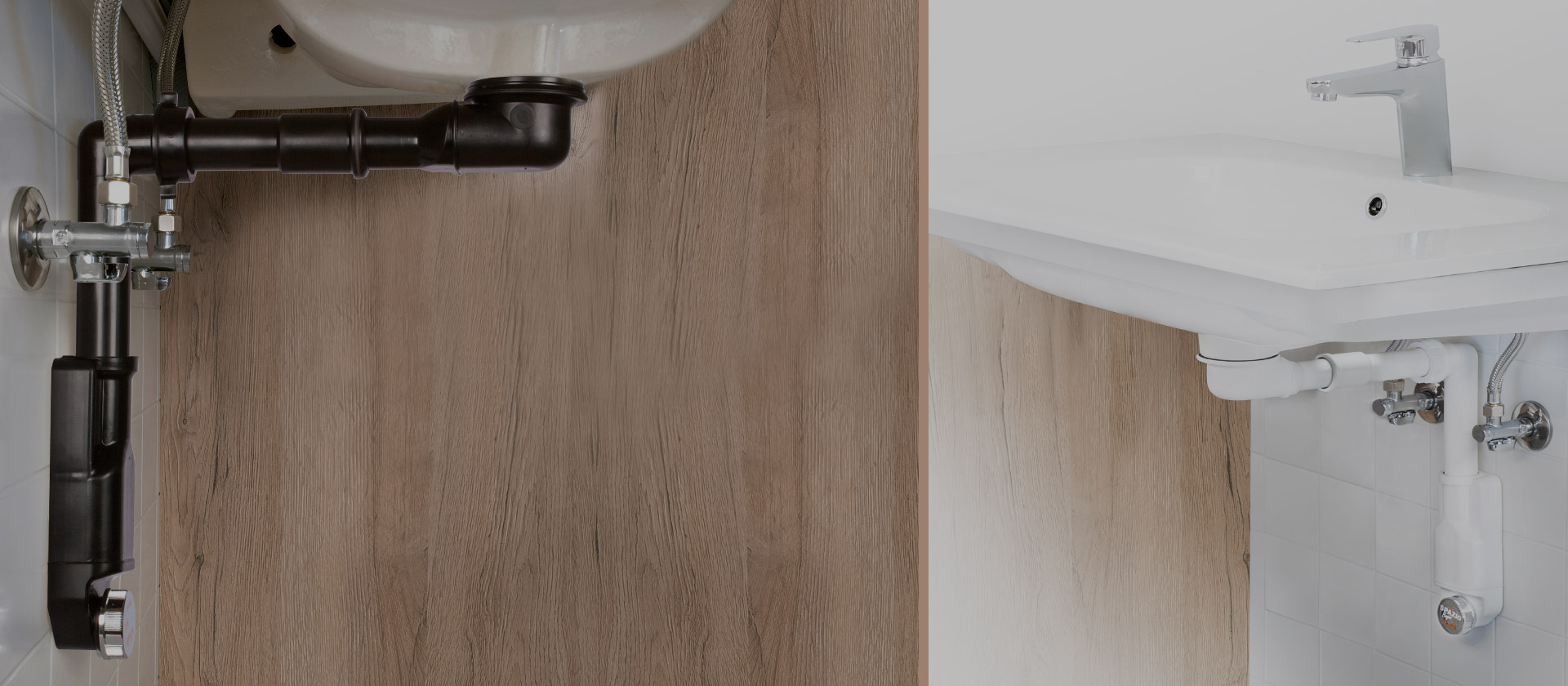 Der superflache Siphon, der neuen Platz unter dem Waschbecken schafft.
