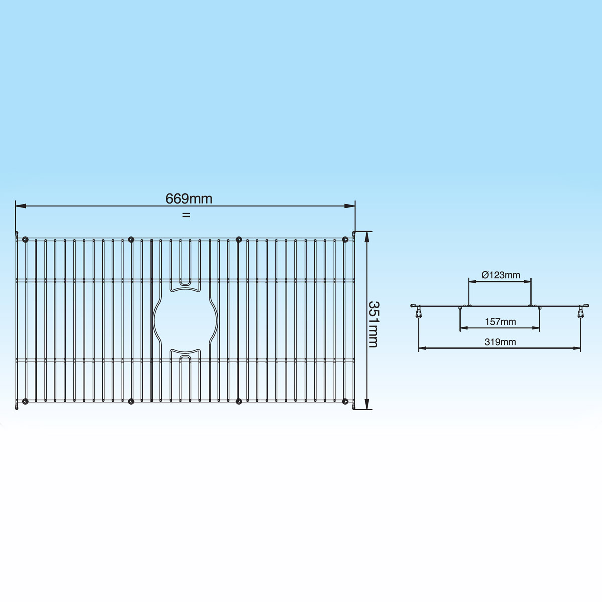 Grid 669x351 mm - Central hole MOD. 1