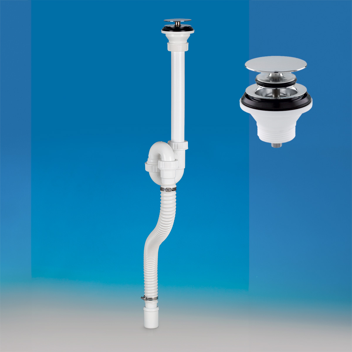 Siphons flexible avec sortie au sol pour lavabos autoportants avec Basket Bagno